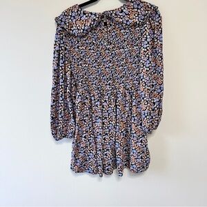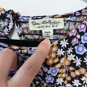 Miss Selfridge Mini Dress Women's Size 8 Ditsy Floral Long Sleeve Black Brown
