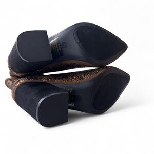 Leopard spots fashioned out of glossy, glimmering rhinestones dazzle the knit upper of a pointed toe boot stacked on a block heel. 3 3/4" heel 6" shaft Textile upper and lining/synthetic sole