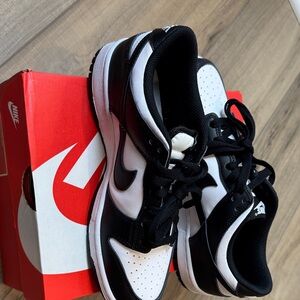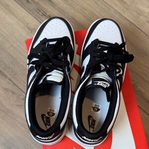 Classic Nike Dunk panda sneakers. Black and white design. Boys 7Y.