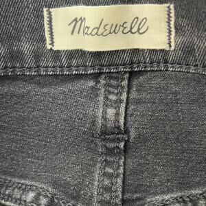 Style Tags: madewell, denim skirt, mini skirt, raw hem, black denim, size 27, straight skirt, casual, minimalist, streetwear, y2k, trendy