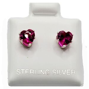 Sterling Silver 925 Redish Pink CZ Heart Shaped Stud Earrings Valentines.