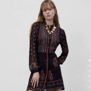 This Zara dress is completely new (NWT) and has never been worn; price is firm. It features an embroidered bib front with beautiful oriental-inspired embroidery across the chest in a rich maroon color. This style from Zara is hard to find now and has become quite rare.