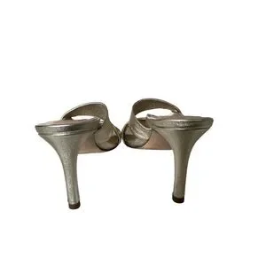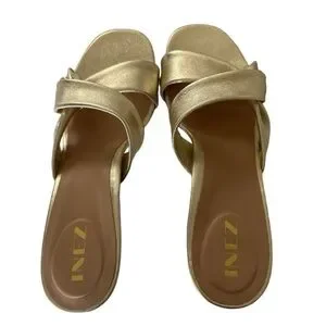 Elegant gold Inez heels. Step out in style with these luxurious leather gold heeled sandals. Perfect for any occasion, they offer both comfort and sophistication. Beautiful holiday shoe! Heel appropriately 2.9 inches.