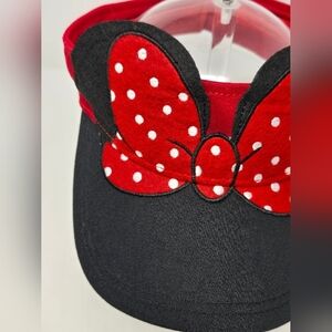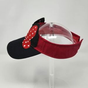 DISNEY PARKS MINNIE MOUSE SUN VISOR BLACK & RED POLKA DOT BOW EARS WOMEN OS