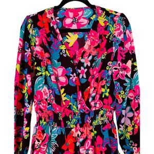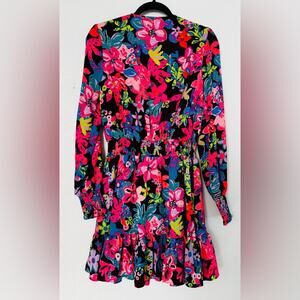 Vibrant floral dress with a flattering V-neck design. Perfect for any occasion.