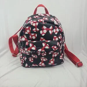Walt Disney World Parks Minnie Mouse Bows Mini Backpack Red Black Faux Leather