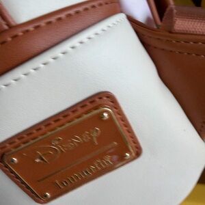 Chic Disney Loungefly bag. Features white and tan colors. Ideal for Disney enthusiasts.