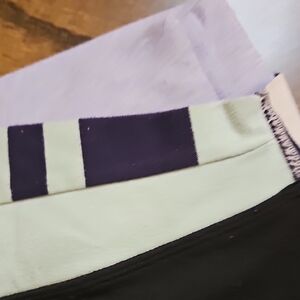 Stylish and versatile cropped leggings set. Includes black pair and two with colored/patterned waist bands. Ideal for e eryday wear.