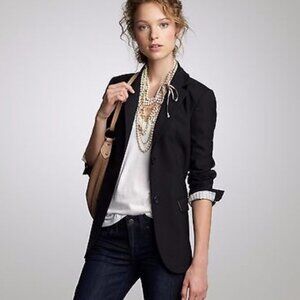 J. Crew Boyfriend Blazer Womens Size 6 Black Longline Wool Blend Single Breasted