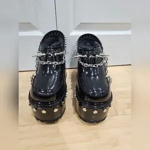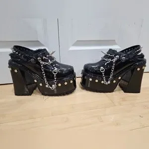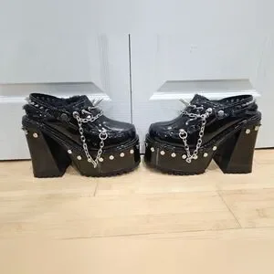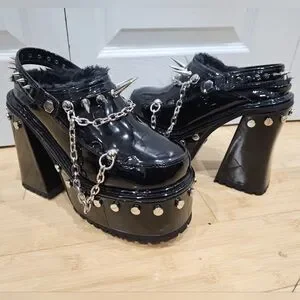 Dolls Kill Widow Black Silver Spiked Righteous Rebel Platform Mules Heels 8 9