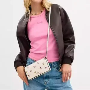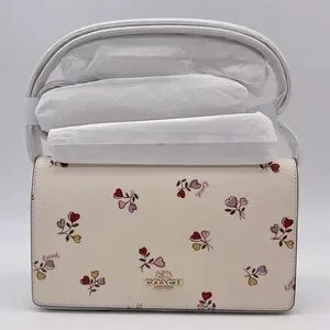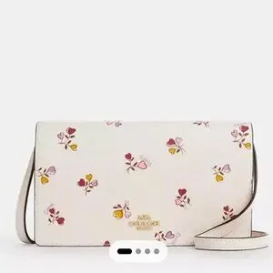 Coach Anna Foldover Clutch Crossbody Bag With Heart Print