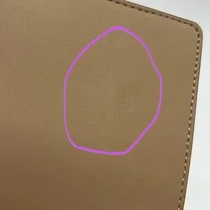 🩷Hi!🩷Please look at last two pics, inside flap irregularity of the texture but not the color. Also a faint light pink spot I’m guessing dye. Brand new bag and gorgeous, just little beauty marks😉
