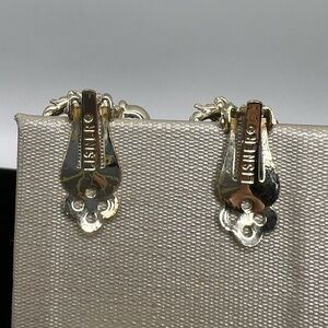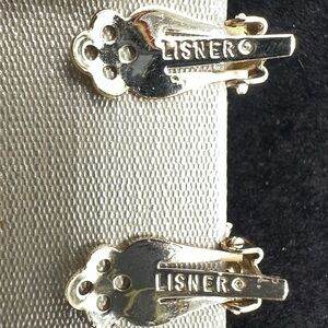 Beautiful vintage Lisner earrings in excellent condition. Gold-tone floral design with sparkling clear rhinestones. Clip-back style.