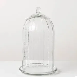 Bring a touch of elegance to your interior decor with the Decorative Cloche Clear from Hearth & Hand™ with Magnolia. This glass cloche allows you to display small figurines, collectibles, indoor plants, and artificial floral arrangements. Featuring a classic transparent dome design with a ribbed outer surface for clearly showcasing objects from the outside, it has a knob on top for easy lifting.