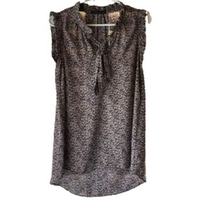 Indie Granola Bohemian Harlowe & Graham Blue Cream Floral Ruffled Blouse Size L