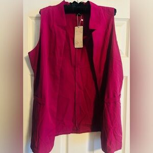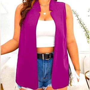 Add a vibrant touch to your wardrobe with this sleeveless fuschia vest. Perfect for versatile styling and layering.