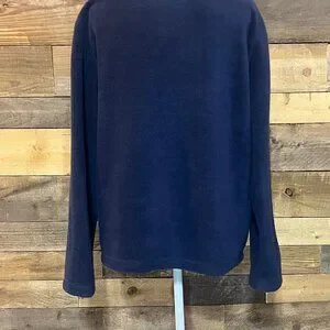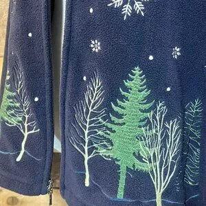 Croft & Barrow Fleece Navy Zip Up Jacket Christmas Theme Trees and Snowflakes Size Large Good Pre-owned condition.