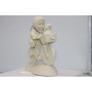 Charming "My First Wheels" Snowbabies figurine from Dept 56's Starlight Games collection. Perfect for collectors and fans of whimsical holiday decor. A delightful addition to any festive display.