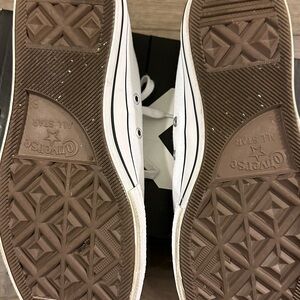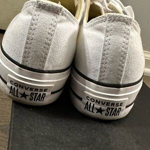 Classic Converse sneakers in white canvas. Iconic design with durable platform sole. These are super comfortable. Worn two times, too big for me. Make me an offer