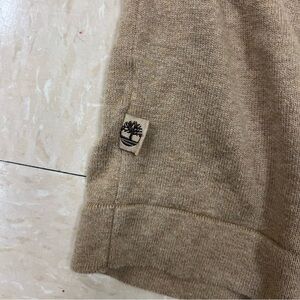 Timberland men’s crewneck sweatshirt in a tan color. Features ribbed trim, V-stitch neckline detail, and embroidered Timberland tree logo on chest. Soft and comfortable — perfect for casual wear or layering. Excellent condition (no holes or stains).