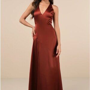 Lulus Purely Elegant Rust Brown Satin Twist-back Maxi Dress - Size M