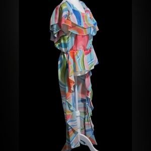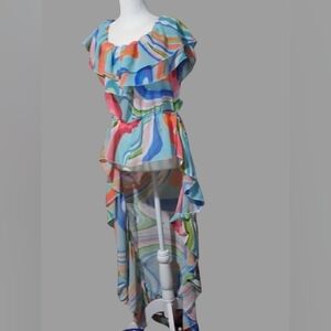 New "NWT" Girl Soul High Low Colorful Ruffled Romantic Maxi Dress, XL