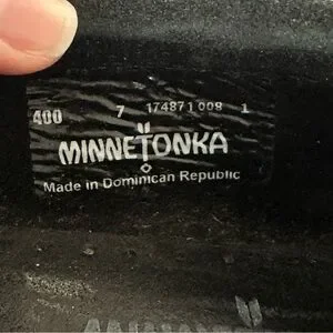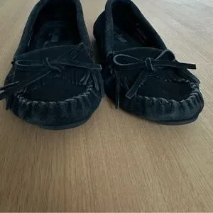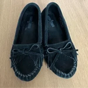 Minnetonka Kilty Hardsole Suede Moccasin Loafer Slip On Black Size 7 Boho Indie