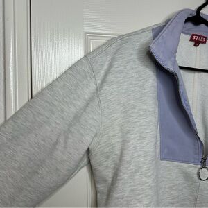 Staud Alys colorblock cotton-blend half-zip sweatshirt Heather Grey and like lavender color size Medium