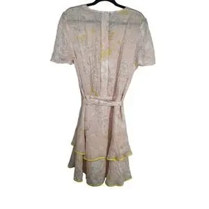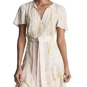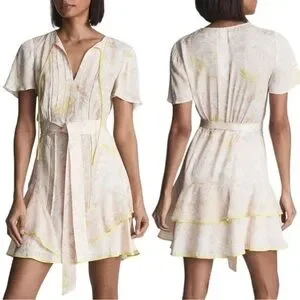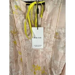 NWT Reiss Carlotta Pale Pink and Yellow Tie Waist Flippy Floral Mini Dress