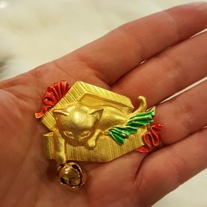 VINTAGE MARKED JJ CAT IN BOX WITH BELL BROOCH