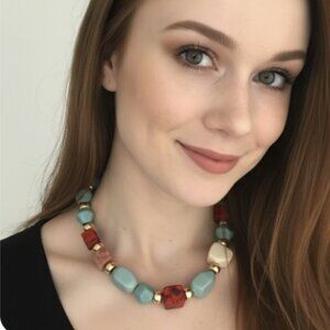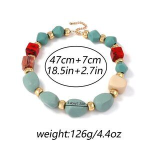 Aqua Blue, Red & Cream Resin Bead Choker Necklace - Modern Boho!