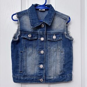 This stylish blue denim vest is perfect for kids. It's designed for comfort and durability, making it ideal for layering.