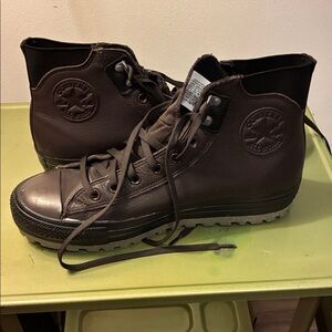 Waterproof converse all star leather sneakers with utility traction. Mens size 11.5 only worn a couple of times. Great pre-owned condition