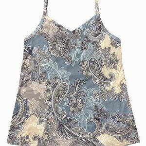 Blue Paisley Floral Print Cami Top, Casual V Neck Sleeveless Top