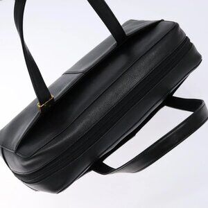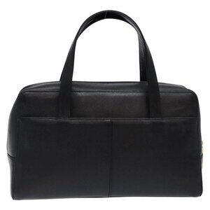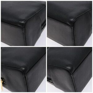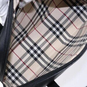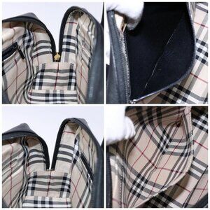 BURBERRY Hand Bag Leather Black Gold Auth