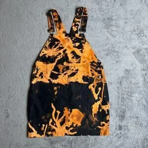 Shelbe Shop Denim Romper Skirt Size M Hand Died Acid Bleach Utility Canvas