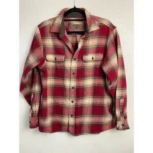 Orvis Heavyweight Flannel Shirt Jacket Red Plaid Shacket Men size Large Pockets