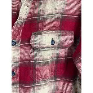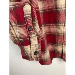 Orvis Heavyweight Flannel Shirt Jacket Red Plaid Shacket Pockets Thick Size Large 100% Cotton