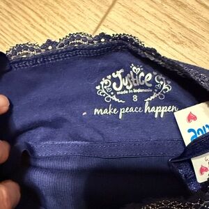 Justice Navy Tank With Silver Lace Trim Camisole