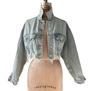 Trio Cropped Distressed Hollywood Denim Jacket Size S