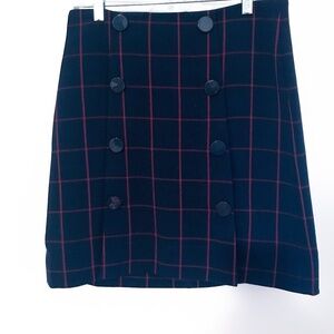 Navy and Red Plaid Double Breasted Windowpane Skirt