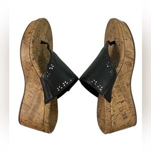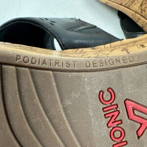 Vionic Anitra Black Leather Platform Wedge Sandals Cork Sole Comfort Orthotic 8