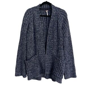 Free People Chunky/heavy knit Textured Blue Cardigan w/ Pockets Sz S
