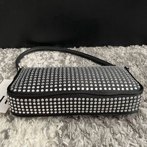 Shoulder handbag with rhinestone detail. Removable double shoulder strap and adjustable crossbody strap. Zipper closure with double pull tabs. *Brand new with tags. Authentic brand
