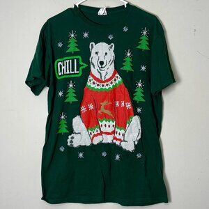 Christmas Shirt Men's Medium Green Polar Bear Chill Graphic Tee Holiday Party