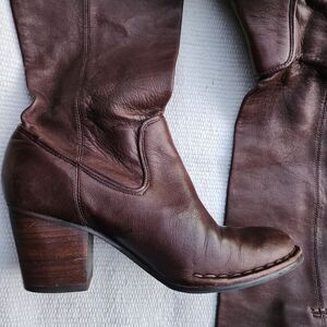 frye leather riding boots with soft loose top meant to fit in a scrunchy style. as seen on kate Middleton. Preloved condition. All sections of interest as well any known flaws have been documented in the photos and noted as thoroughly as possible. if there are no known flaws, none will be noted. Please feel free to ask any questions before purchase 🙂.
