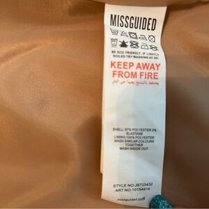 Missguided oversized open front boyfriend style camel colored fully lined blazer with two front pockets, slightly padded shoulders, and cuffed 3/4 length sleeves is a must have staple in any wardrobe! It can be dressed up or down fir any occasion and is effortless to wear! Size 4 measurements are PTP ( measured with a 3” to 3 1/2” opening ( see photo ) length 31” sleeve 18 1/2”