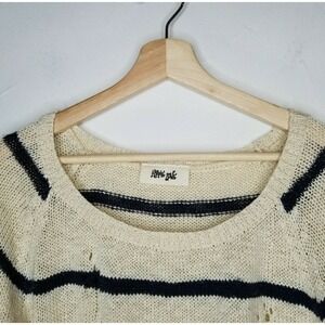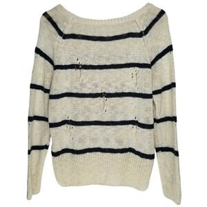 HIPPIE LOVE College Ruled Distressed Cotton Sweater Women Sz M Navy Ivory Stripe