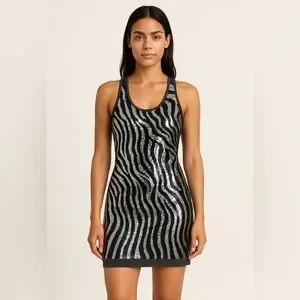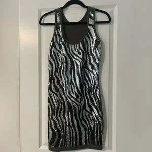 Silver and Black Sequin Medium Body-con Mini Dress