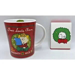 Peanuts Lot Sally Christmas Mug 14oz & Snoopy Notepad Dear Santa I’ve Been Nice